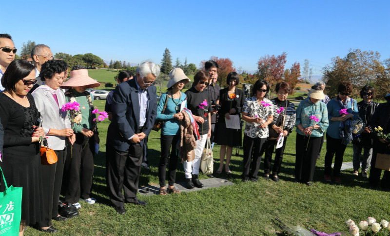 | People attend the memorial service and pay tribute to Iris Chang on Nov. 9, 2014 at the Gate of Heaven Catholic Cemetery in Los Altos, California. (People’s Daily Online/ Han Shasha) |