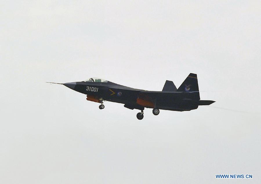 A Chinese J-31 stealth fighter performs at the 10th China International Aviation and Aerospace Exhibition in Zhuhai, south China's Guangdong Province, Nov. 11, 2014. Some 700 exhibitors at home and abroad with 130-plus planes attended the airshow from Nov. 11 to 16. (Xinhua/Liang Xu)