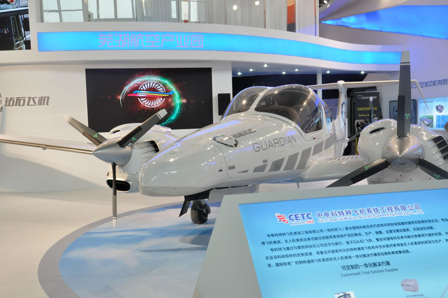 Photo taken on Nov. 10, 2014 shows exhibitors getting ready for the 10th China International Aviation & Aerospace Exhibition (Airshow China 2014) scheduled from Nov. 11 to 16 in Zhuhai, south China’s Guangdong province. (People’s Daily Online/ Sun Zhao)