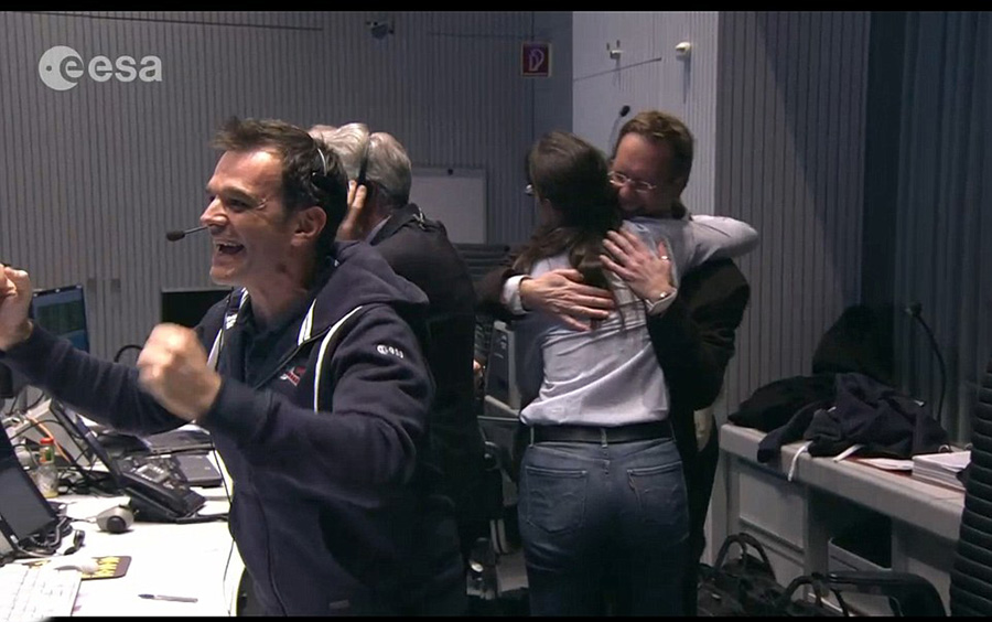 The staff celebrate the successful landing of the Philae. (Photo/ NASA)