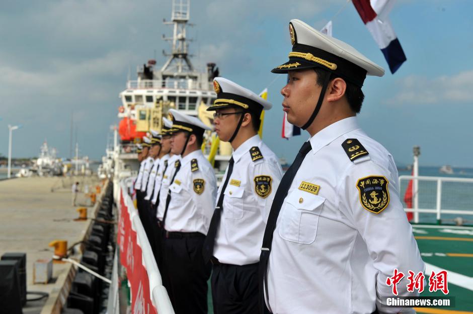 On Nov. 6, 2014, Haixun 1103, the first large patrol ship of the Sanya Maritime Safety Administration, was officially commissioned. The ship is 64 meters long, 10 meters wide, with 830 tons of displacement and 1,800 sea miles of cruising ability. The well-equipped ship is capable of conducting air and sea cruise under various weather conditions. (Chinanews/Luo Yunfei)
