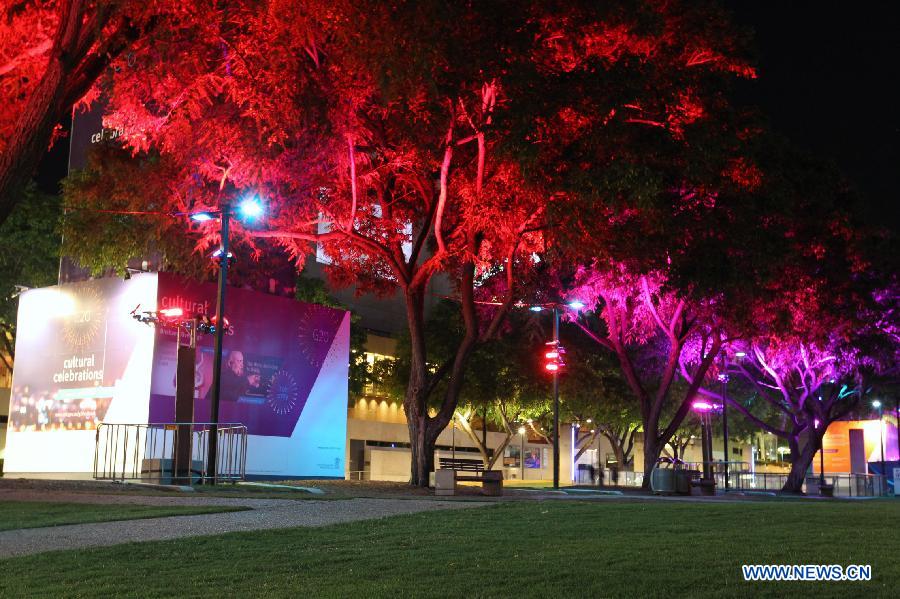 Photo taken on Nov. 14, 2014 shows a light show in Brisbane, Australia. The G20 Summit is to be held in Brisbane on Nov. 15 to Nov. 16. (Xinhua/Jin Linpeng)