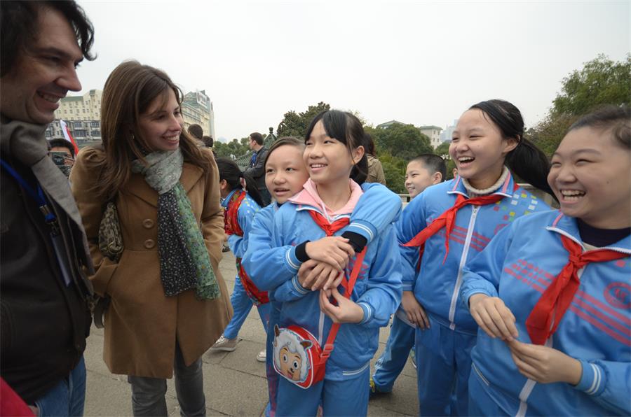 Visitors visit the Pavilion of Prince Teng in Nanchang, capital of Jiangxi province. More than 40 reporters from foreign-language media in China will visit Jiangxi province until Nov. 20, 2014. (Photo/People's Daily Online)