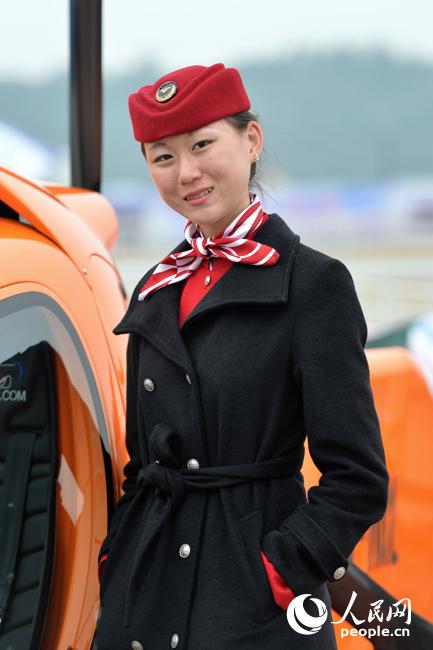 Stewardesses perform an uniform show at the Airshow China, Nov. 13, 2014. (People's Daily Online/Weng Qiyu)