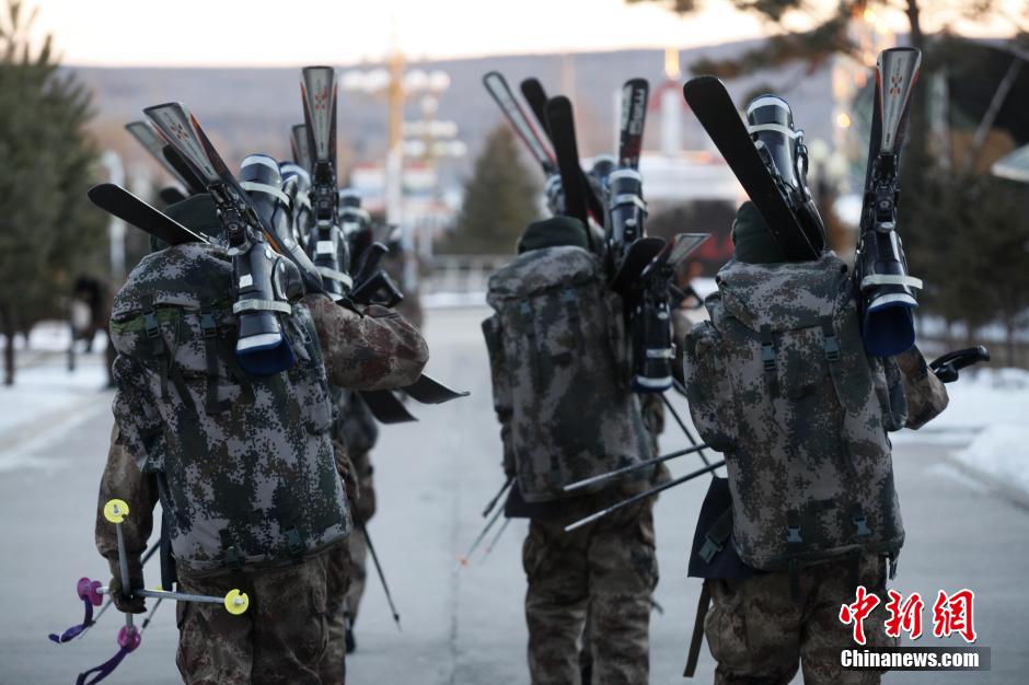 Soldiers from border defense regiments of Shenyang military region have skiing exercise braving minus 20 degree temperature. (CNS/Wei Jianshun)