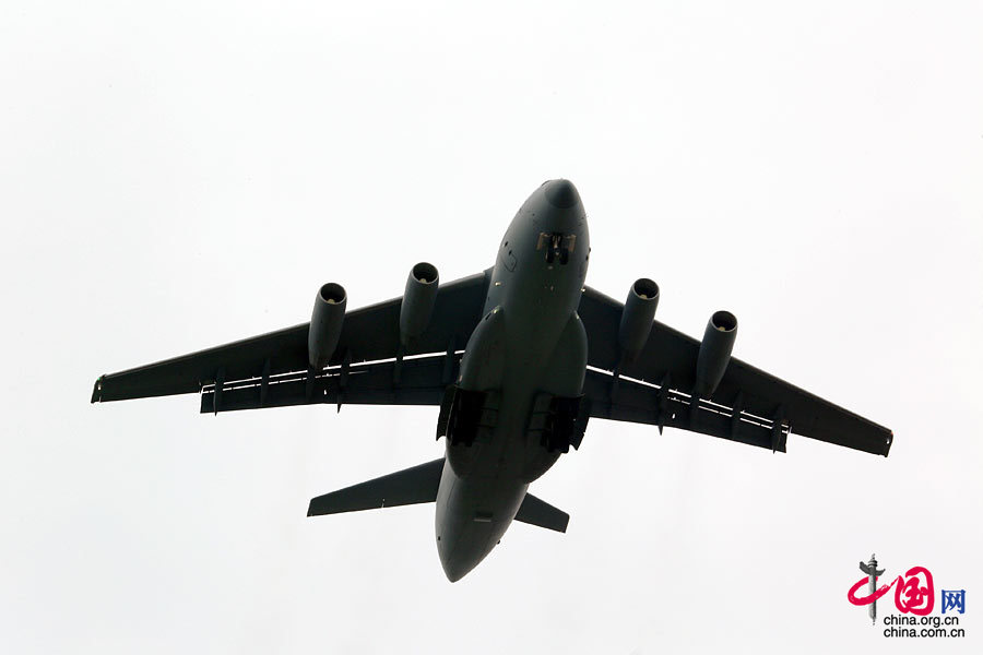 China’s self-developed heavy-duty military transport aircraft Y-20 performs aerobatics at the 2014 Zhuhai Airshow. (Photo/China.org.cn)