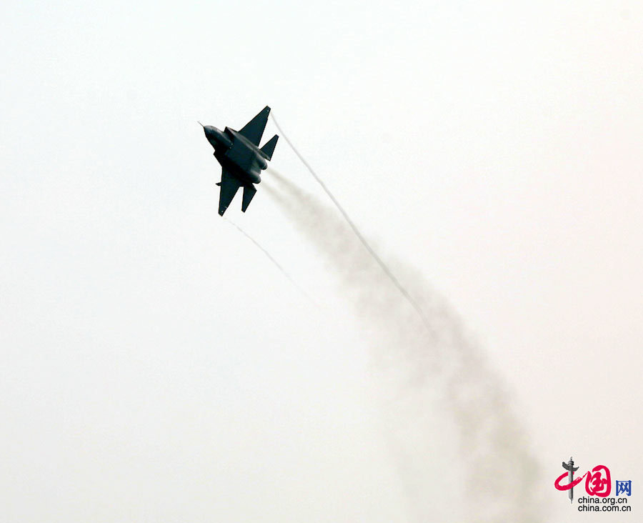 China’s self-developed stealth fighter FC-31 performs aerobatics at the 2014 Zhuhai Airshow. (Photo/China.org.cn)