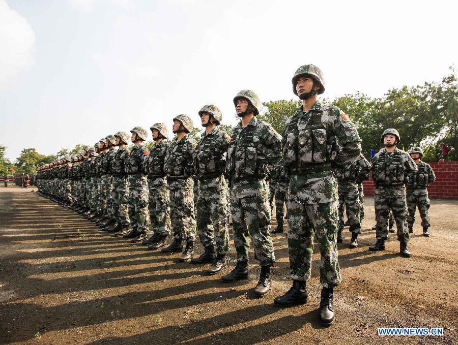 Chinese soldiers stand at attention at the starting ceremony of the Hand-in-hand India-China Anti-Terrorism Joint Training Exercise in Pune, India, Nov. 17, 2014. The joint counterterrorism training exercise would last for ten days. (Xinhua/Zheng Huansong)