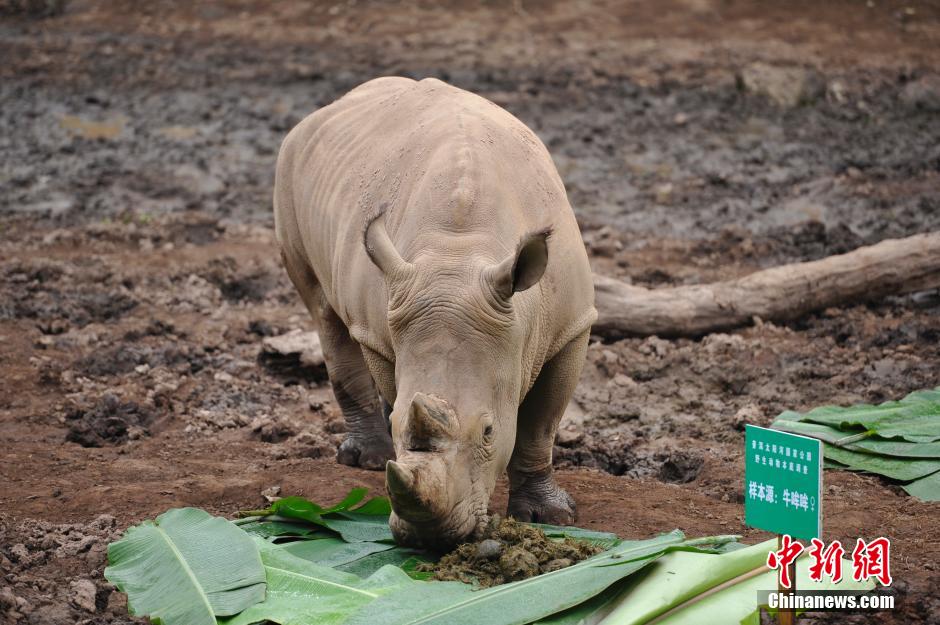 Staff members examine rhinoceros' faeces. (CNS/Liu Ranyang)