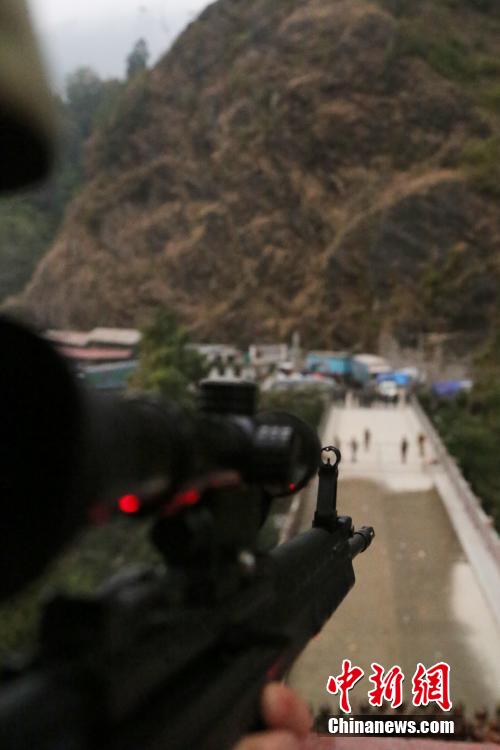 On Nov. 16, 2014, the frontier police force in Tibet and the armed police and fire department of Nepal conduct a joint exercise at the Sino-Nepal Friendship Bridge. The exercise focused on dealing with emergency situations such as attacks at the checkpoints. The joint exercise effectively improved the cooperation ability between the armed police of the two countries. (Chinanews/Zheng Yongbo)