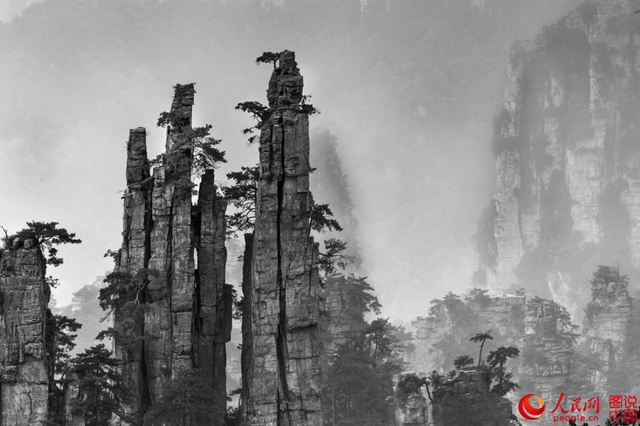 Located in northwest Hunan Province, Zhangjiajie National Forest Park is a famous tourist attraction. The unique landscape is like a Chinese ink painting in black and white. (Photo source: people.cn)