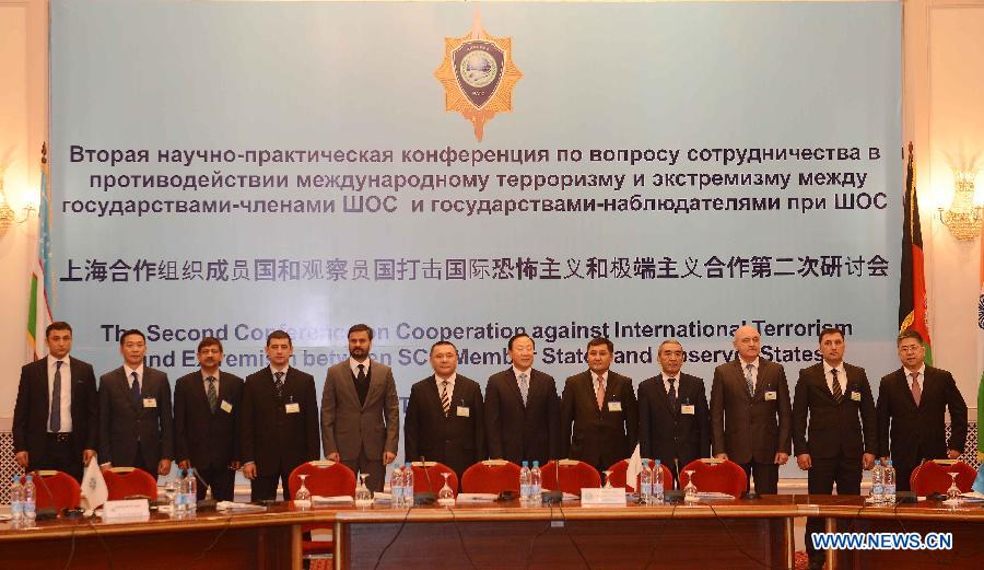 | The heads of delegations pose for photo at the Second Conference on Cooperation against International Terrorism and Extremism between SCO Member States and Observer States, in Tashkent, capital of Uzbekistan, on Nov. 18, 2014. (Xinhua/Sadat) |