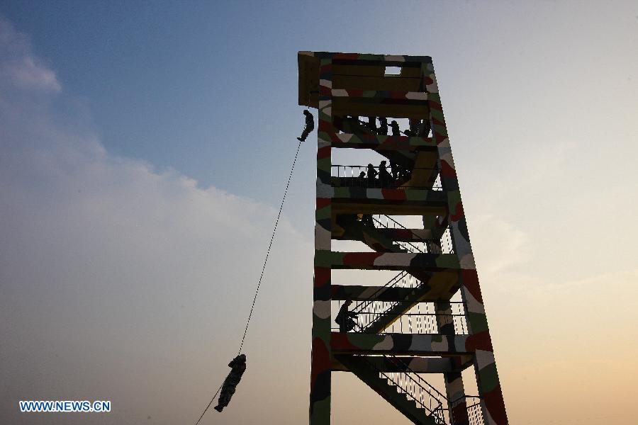 Chinese and Indian soldiers take part in the Hand-in-hand India-China Anti-Terrorism Joint Training Exercise in Pune, India, on Nov. 18, 2014. The joint counterterrorism training exercise will last for ten days. (Xinhua/Zheng Huansong)