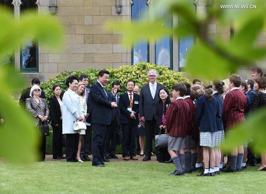 Chinese President Xi Jinping talks with students of a primary school in Tasmania state, Australia, Nov. 18, 2014. (Xinhua/Ma Zhancheng)