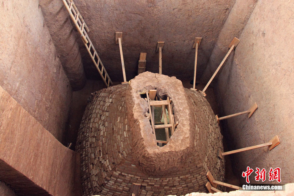 According to news released by Shaanxi Provincial Institute of Archeology on Nov. 18, 2014, the excavation of the joint tomb of Chancellor Han Xiu and his wife of Tang Dynasty (618-907) has finished. Hundreds of cultural relics were excavated, including epitaph, tomb figures and exquisite frescoes that are still colorful after over 1,000 years. The landscape painting on the north wall of the coffin chamber is the earliest Tang fresco on a single wall discovered so far. (Chinanews/Zhang Yuan)