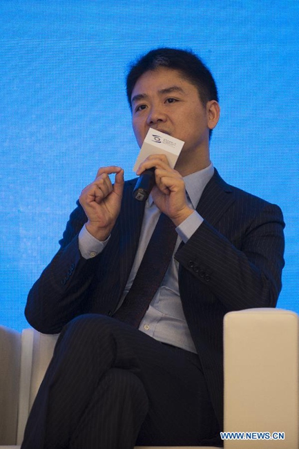 Liu Qiangdong, CEO of e-commerce company JD.com, addresses the Chinese and Foreign Internet Leaders Summit during the World Internet Conference in Wuzhen, east China's Zhejiang Province, Nov. 20, 2014. Representatives from nearly 100 countries and regions took part in the three-day 2014 World Internet Conference that kicked off Wednesday in Wuzhen. (Xinhua/Ju Huanzong)