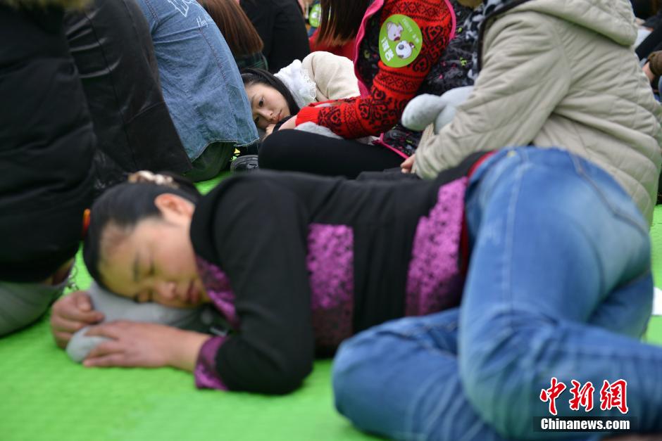 On Nov. 18, 2014, about 200 people participate in China’s first “Daydreaming Competition” held in Chengdu, southwest China’s Sichuan province. The participants are required to daydream in two hours without moving, laughing or falling asleep, otherwise they will be eliminated. The oldest participant is 70 years old, while the youngest is no more than 10 years old. (Chinanews/Zhang Liang)
