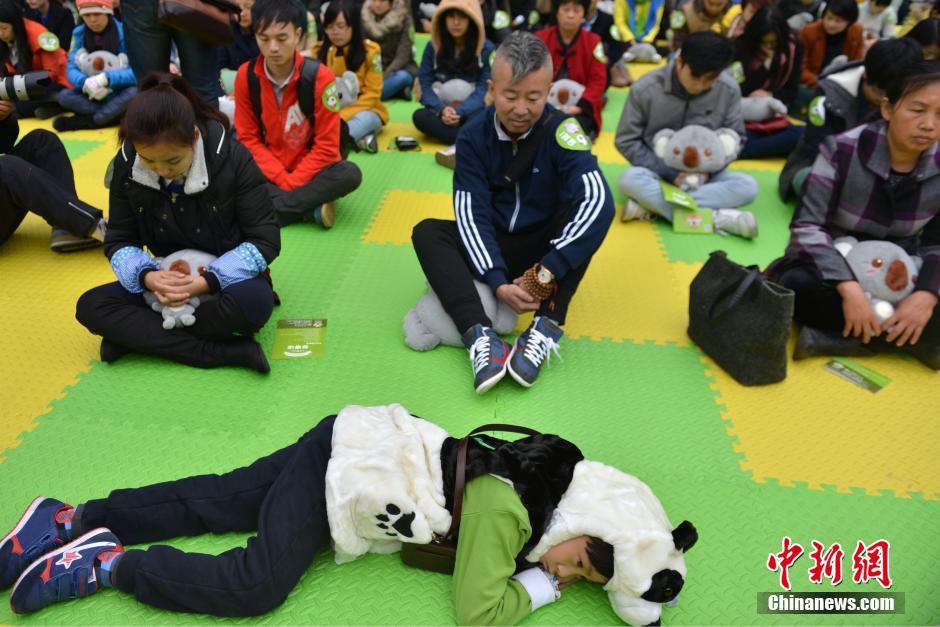 On Nov. 18, 2014, about 200 people participate in China’s first “Daydreaming Competition” held in Chengdu, southwest China’s Sichuan province. The participants are required to daydream in two hours without moving, laughing or falling asleep, otherwise they will be eliminated. The oldest participant is 70 years old, while the youngest is no more than 10 years old. (Chinanews/Zhang Liang)