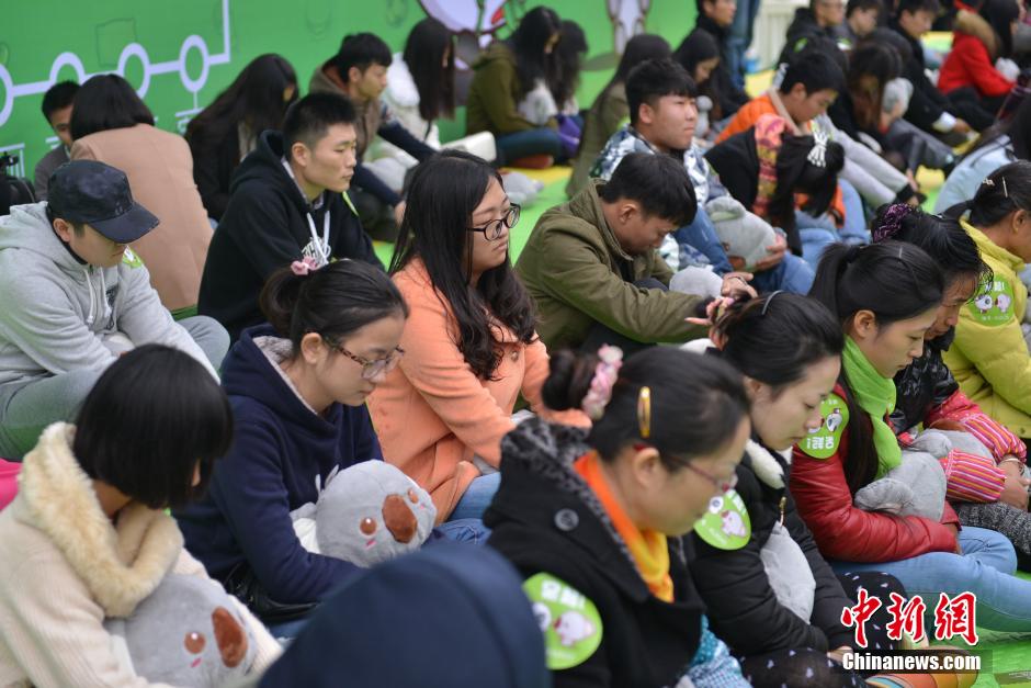On Nov. 18, 2014, about 200 people participate in China’s first “Daydreaming Competition” held in Chengdu, southwest China’s Sichuan province. The participants are required to daydream in two hours without moving, laughing or falling asleep, otherwise they will be eliminated. The oldest participant is 70 years old, while the youngest is no more than 10 years old. (Chinanews/Zhang Liang)