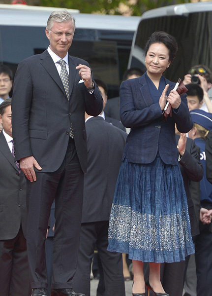 King Philippe of Belgium walks together with Peng Liyuan. (Photo/ forum.china.com.cn)