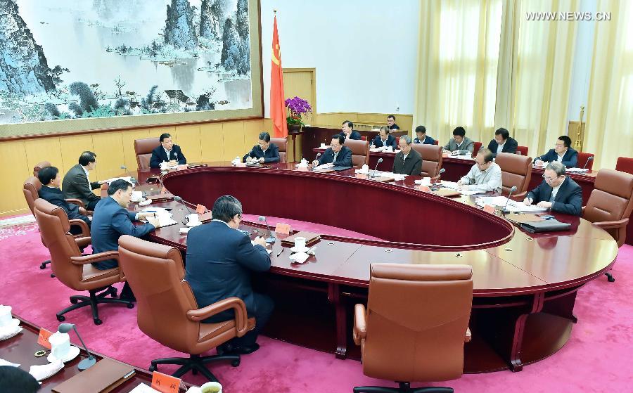 | Liu Yunshan, a member of the Standing Committee of the Political Bureau of the Communist Party of China Central Committee, speaks at a symposium concerning the strict management on both the Party and officials, in Beijing, China, Nov. 22, 2014. (Xinhua/Li Tao) |