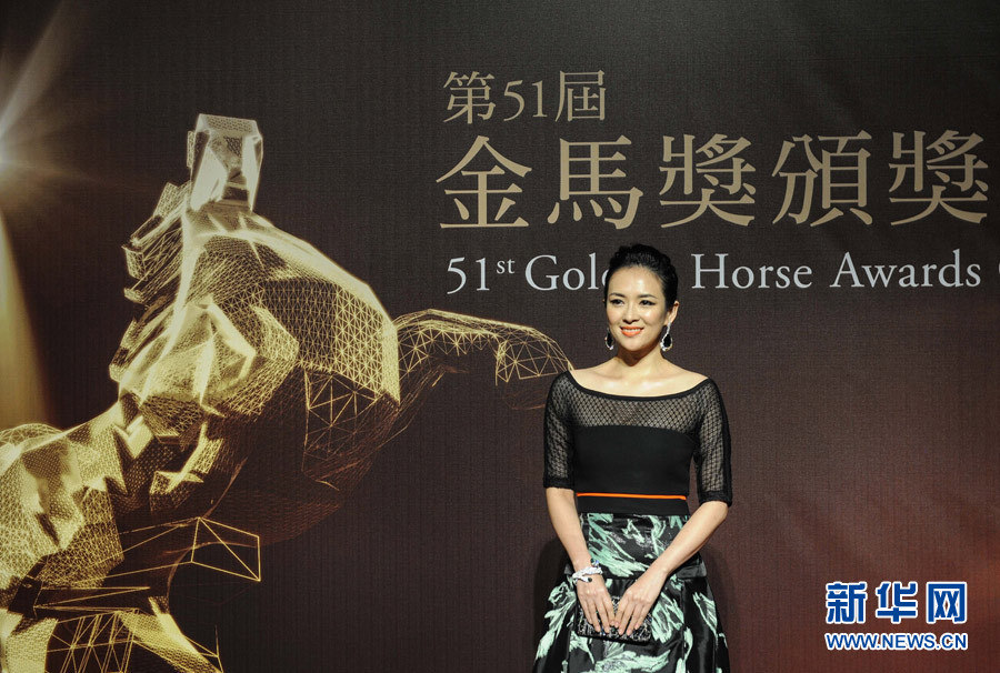 Actress Zhang Ziyi is present at the 51st Golden Horse Awards in Taipei, southeast China's Taiwan, Nov. 22, 2014. (Xinhua/Shen Hong)