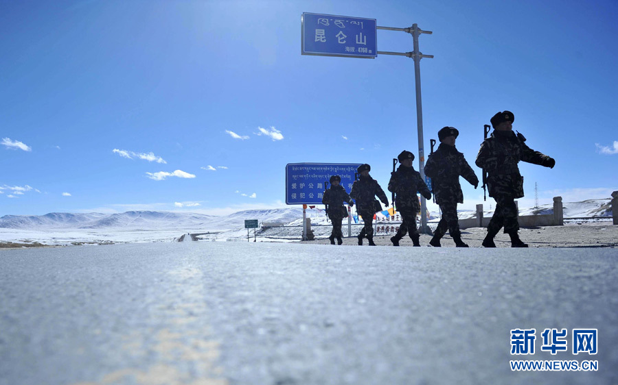 A squadron of the fourth contingent of People's Armed Police in Qinghai province is based in Kunlun Mountains, which is 4,772 meters above sea level. The average temperature here is minus 10 degrees Celsius and the oxygen content in air is 40 percent of inland. People here have to fight against the arduous weather.