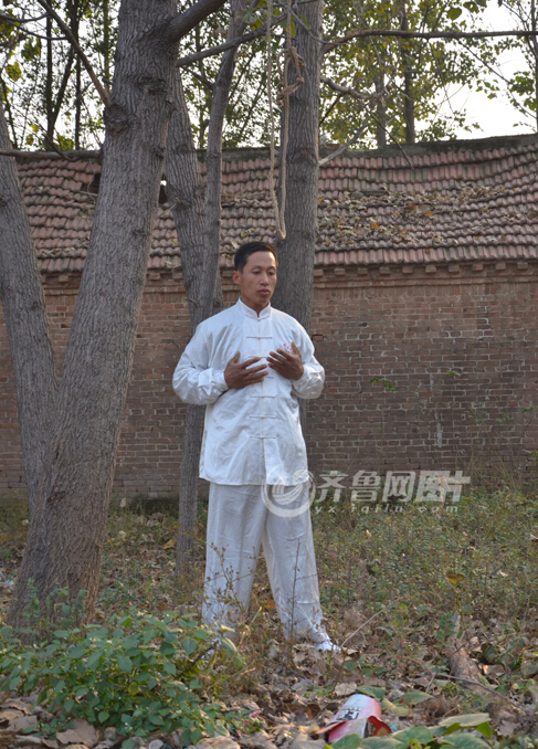 Cheng Haoliang, living in Heze City of Shandong province, hangs himself from a tree and keeps the feet off the ground. According to Cheng, it's a traditional Chinese kung fu stunt which he has practiced for ten years. (Photo/iqilu.com)
