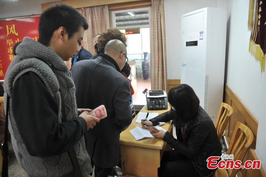 Business owners of hotpot industry queue to sign up for the first training program offered by the Chongqing Hotpot Academy in Chongqing municipality on November 25, 2014. [Photo: China News Service/ Chen Chao]