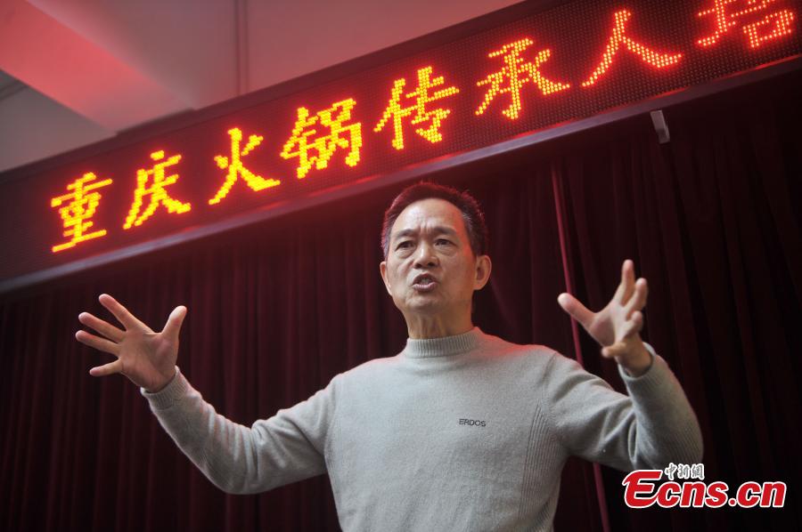 Li Dejian, head of the hotpot association in Chongqing gives lecture to 40 students during a theory class of the Chongqing Hotpot Academy on November 25, 2014. The training program as the first class of the academy was attended by 40 business owners in hotpot industry. The academy has been co-established by the Chongqing Hotpot Association, the Chongqing Cuisine Association and the Chongqing Modern Vocational Training Academy. [Photo: China News Service/ Chen Chao]