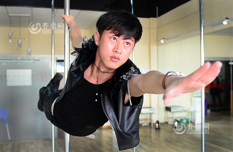 Dongdong was deeply attracted by the eye-catching movements and went to Qingdao for pole dance learning without noticing his parents.(Photo/iqilu.com)