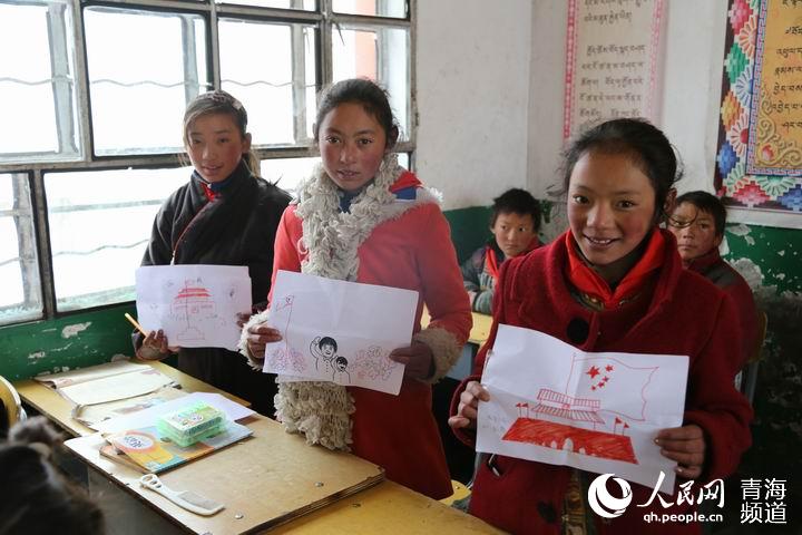 Children express their gratitude to Premier Li by drawing the Tiananmen Square and the national flag of China. (Photo/qh.people.cn)