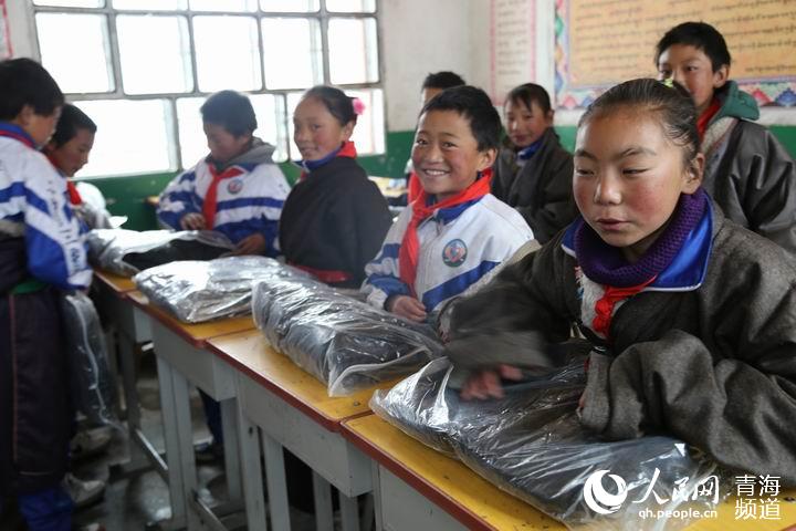 Children are so happy to get their packages. (Photo/qh.people.cn)