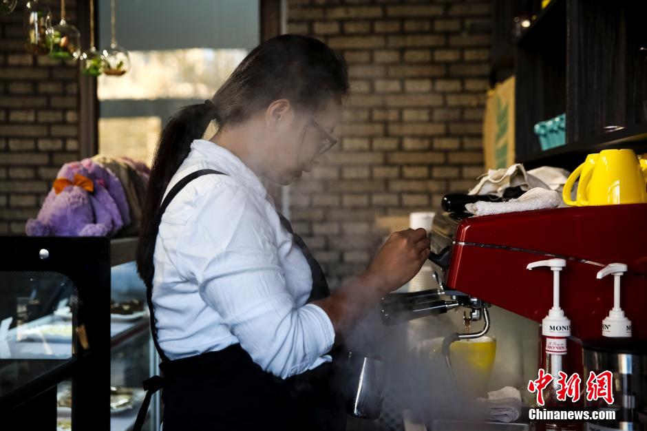 Shanshan is the manager of a coffee shop in Baoding now. She is very responsible at work. (Chinanews/Xiong Ran)