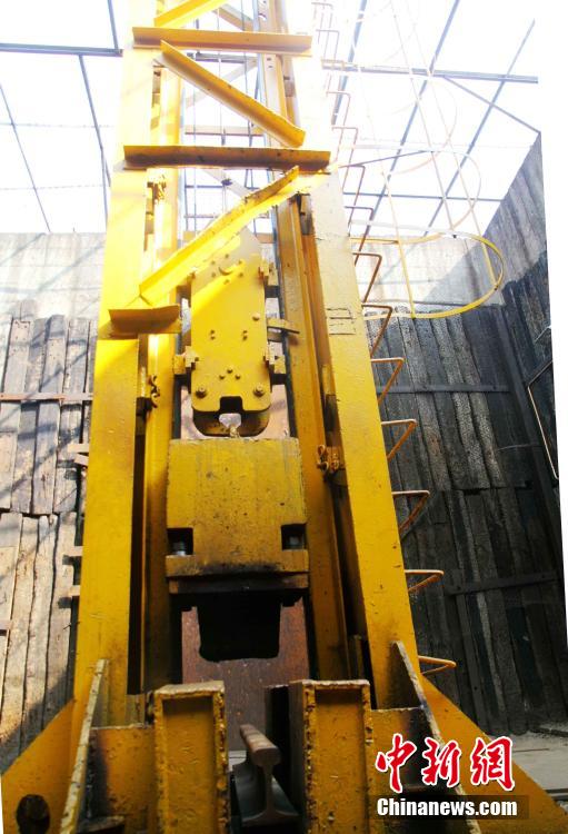 A welded track receives the hammer test. The hammer weighs one ton. (CNS/Zhang Weidong)
