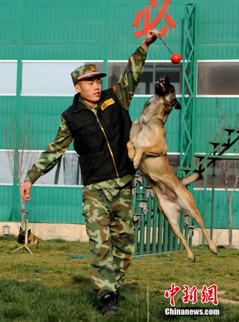 The fireman and his rescue dogs. (CNS/Shi Yonghong)