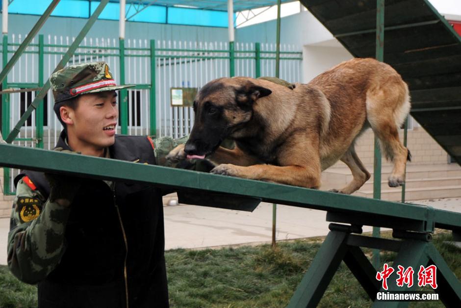 The fireman and his rescue dogs. (CNS/Shi Yonghong)