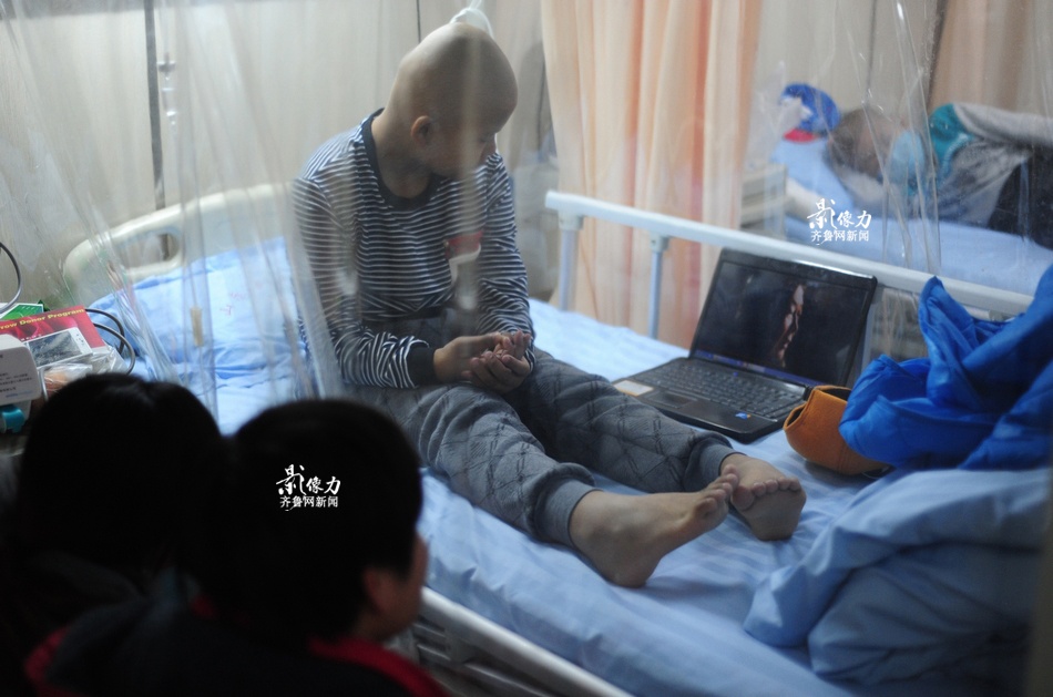 Gao Zunshou needs to stay behind isolation hood for a period of time. Gao's parents watch video clips from those kind-hearted people who helped them. A day after this photo was taken, Gao's father, Gao Dongying returned to work. (Iqili/Yu Peng, Li Ruiping)
