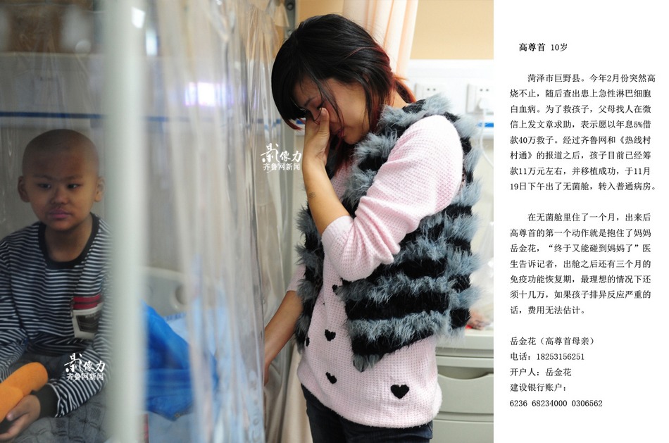 After one-month separation, Yue Jinhua tries to touch his son across the isolation hood. Yue cried when claps with his son. "Thanks for the help from the kind-hearted people. I feel as if the Devil returned my kid for me," says Yue. (Iqili/Yu Peng, Li Ruiping)