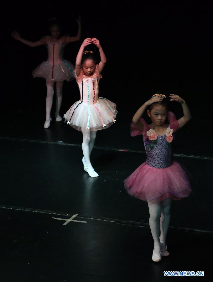 The students of Kongyan Dance Studio perform "Fairy Tales in Winter" at the International Theater in Frankfurt, Germany, on Nov. 30, 2014. (Xinhua/Luo Huanhuan)