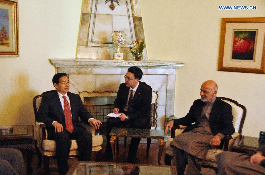 Afghan President Mohammad Ashraf Ghani (R) meets with visiting Chinese State Councilor Guo Shengkun (L) in Kabul, capital of Afghanistan, Nov. 30, 2014. (Xinhua/Chen Shan)