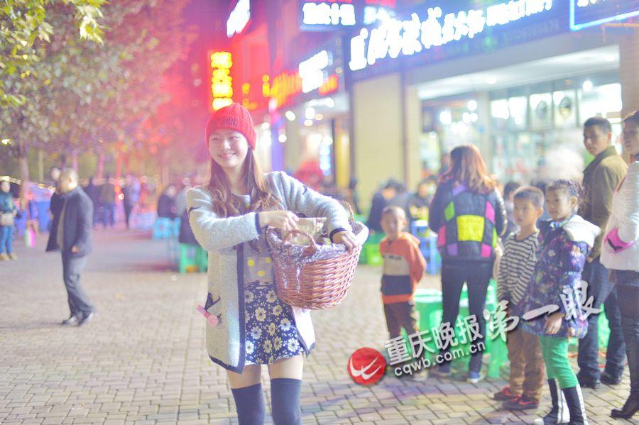 Photo shows Liu selling chestnuts at the market. (Photo/Chongqing Evening News)