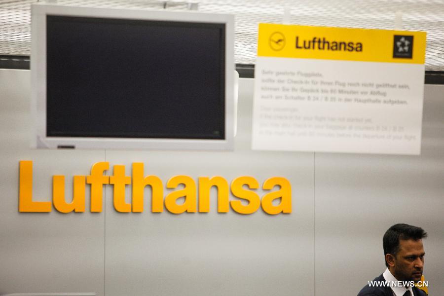 A staff member waits at Lufthansa's check-in desk in Tegel airport, Berlin, Germany, on Dec. 1, 2014. German airline Lufthansa said on Monday that it had canceled nearly half of its scheduled flights on Monday and Tuesday due to a strike by its pilots. (Xinhua/Zhang Fan)