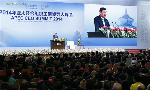 Chinese President Xi Jinping delivers a keynote speech at the opening ceremony of the 2014 Asia-Pacific Economic Cooperation (APEC) CEO Summit in China National Convention Center of Beijing, capital of China, Nov. 9, 2014. (Photo/ Xinhua)