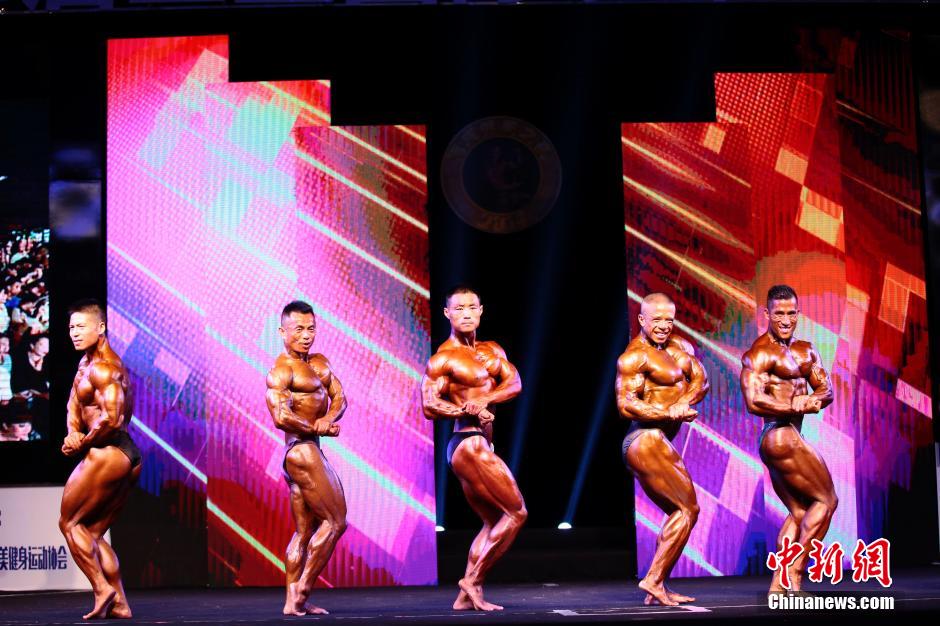 Eye-catching contestants in International beach bodybuilding competition. (CNS/Chen Wenwu)