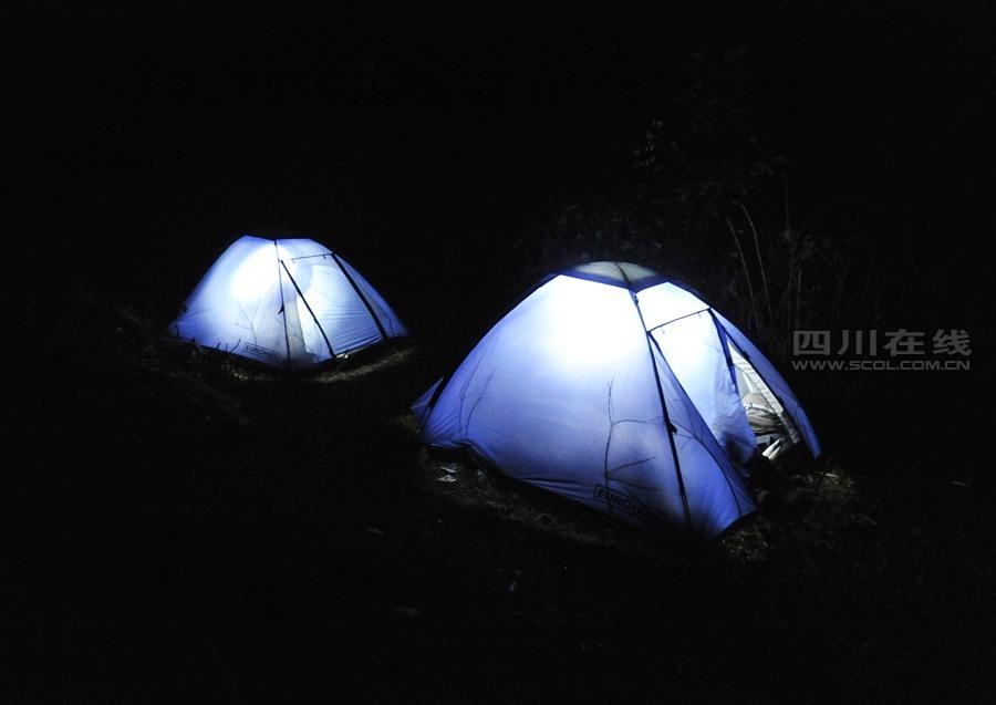 Two tents in the dark night (Photo/SCOL.com.cn)