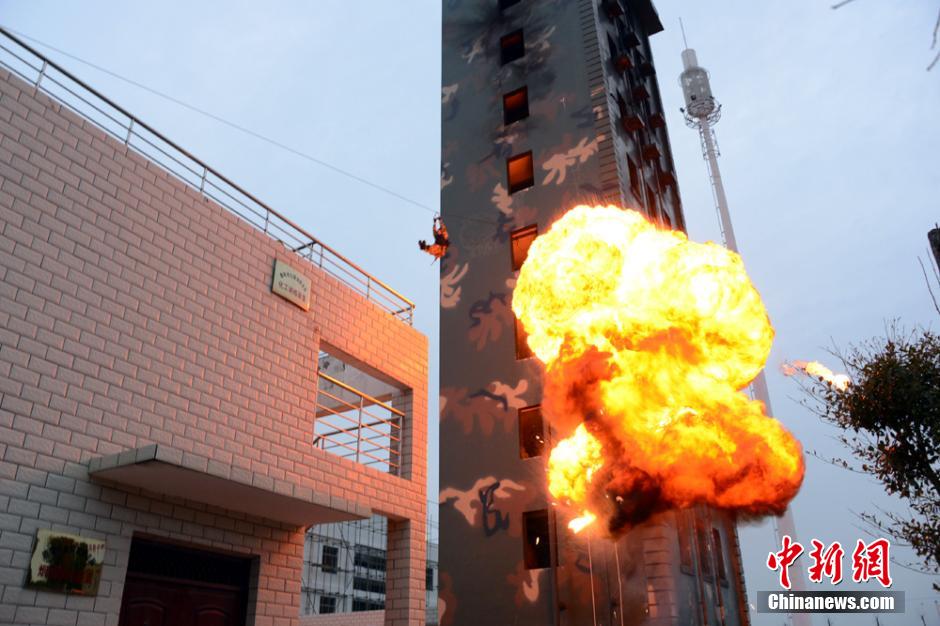 Recently, the armed police detachment in Deyang, southwest China’s Sichuan province, conducts an anti-terror drill to improve their combat capability. Soldiers successfully completed all the training subjects, winning warm applause from the audience. (Liu Yangkuan/Chinanews)