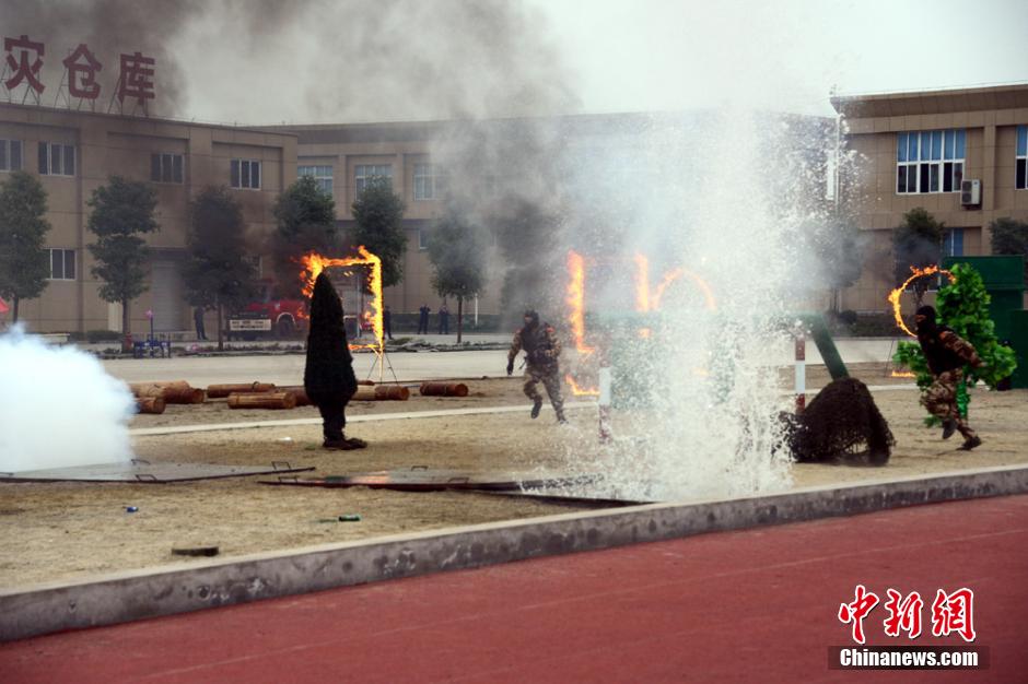| Recently, the armed police detachment in Deyang, southwest China’s Sichuan province, conducts an anti-terror drill to improve their combat capability. Soldiers successfully completed all the training subjects, winning warm applause from the audience. (Liu Yangkuan/Chinanews) |