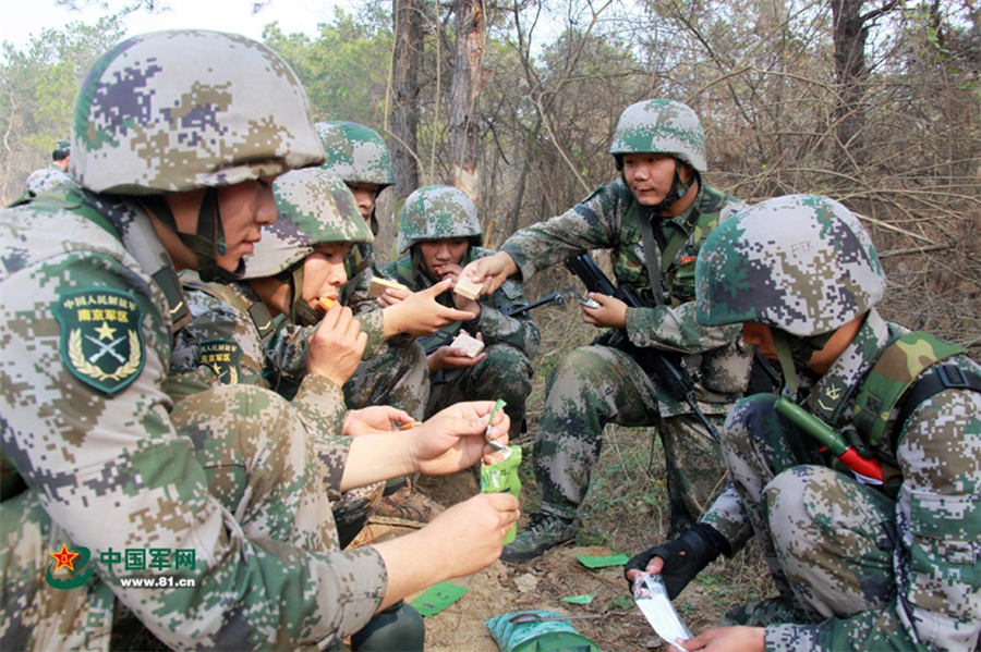 | New soldiers of a brigade of Nanjing Military region conduct drills in November 2014. The drill is intended to build up the combat ability and the bodies of the new soldiers. (Photo/www.81.cn) |