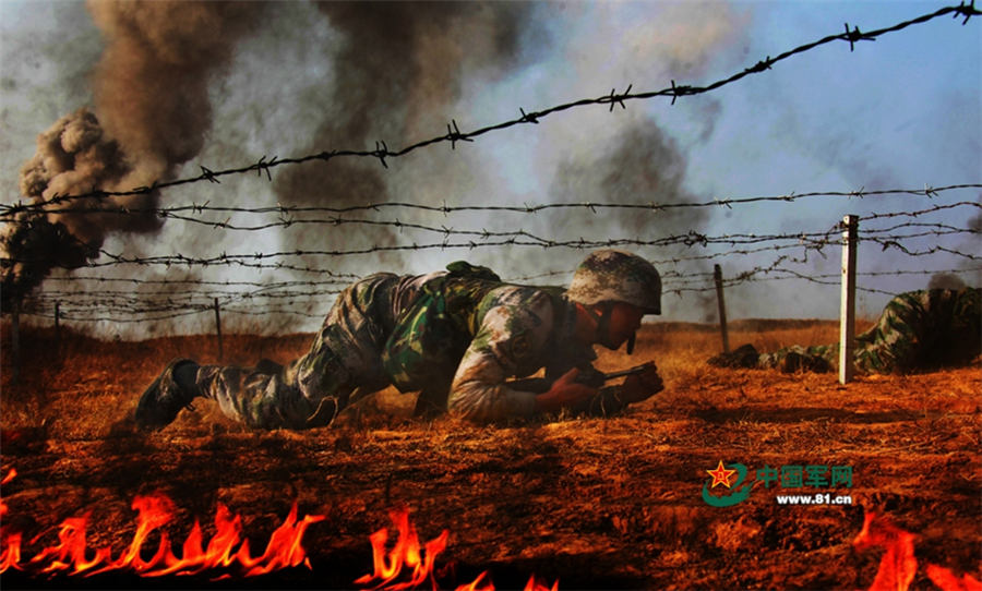 New soldiers of a brigade of Nanjing Military region conduct drills in November 2014. The drill is intended to build up the combat ability and the bodies of the new soldiers. (Photo/www.81.cn)